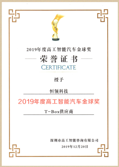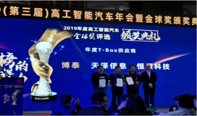 恒領科技榮獲“2019年度高工智能汽車全球獎—T-box供應商”